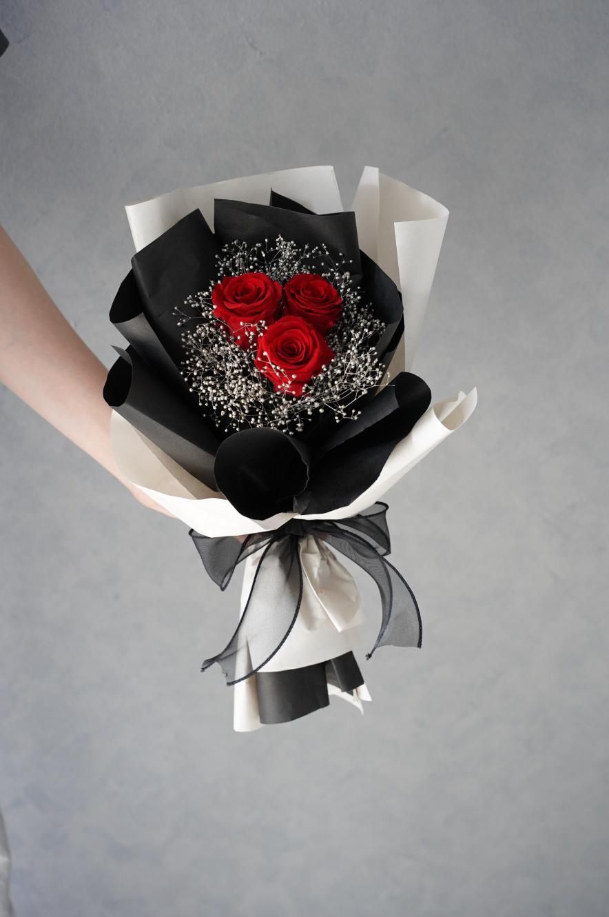 プリザーブドフラワー赤薔薇とかすみそうの花束│プロポーズの花束│卒業式の花束 |成人式の花束│誕生日 記念日